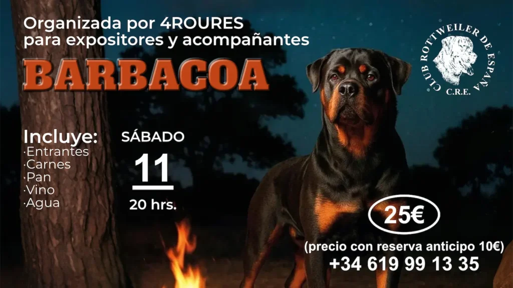 This event seeks to foster brotherhood among attendees and improve the breed in Catalonia and Spain. For further information, please contact 4ROURES (+34 619 99 13 35) via WhatsApp.